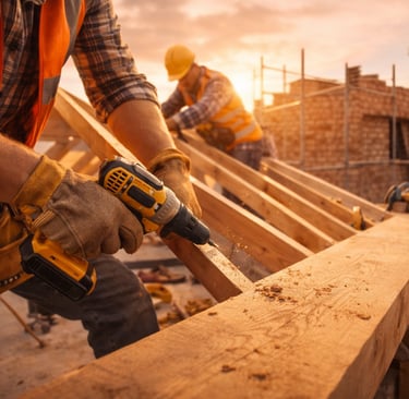 Nos artisans assurent la mise en œuvre des opérations (gros œuvre, charpente, rénovation) avec un souci du détail, de la sécurité et du respect des normes.